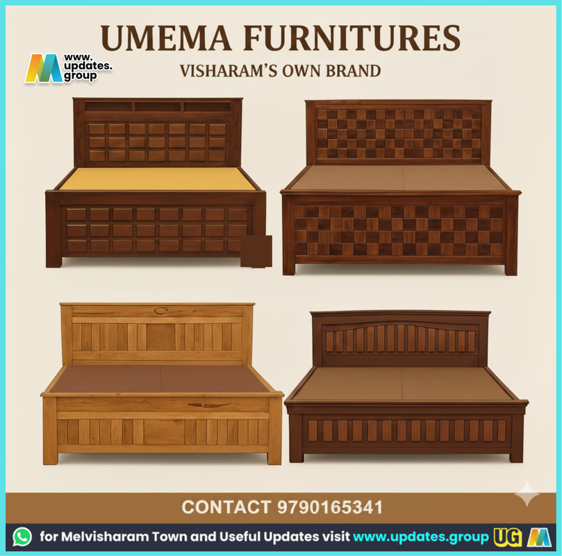 UMEMA Furnitures - King and Queen size cots available on September 25, 2025 9790165341 UMEMA Furnitures King and Queen size cots available. Room sets can be customized as per customer’s choice. ๐ 9790165341