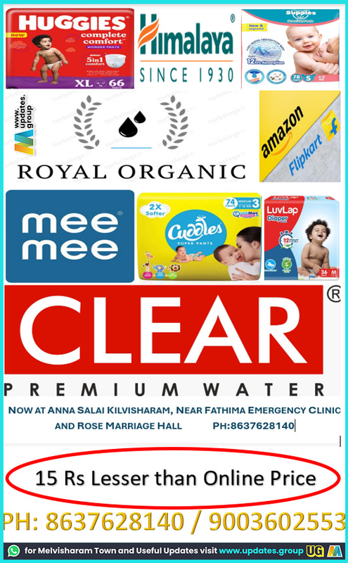 HUGGIES complete comfort Sinl XL: 66 limalaya SINCE 1930 Hews wwww updates. group ROYAL ORGANIC amazon Flipkart mee mee LuvLap Diaper Cattes CLEAR R PREMIUM WATER NOW AT ANNA SALAI KILVISHARAM, NEAR FATHIMA EMERGENCY CLINIC AND ROSE MARRIAGE HALL PH:8637628140 15 Rs Lesser than Online Price PH: 8637628140 / 9003602553 for Melvisharam Town and Useful Updates visit www.updates.group UG LA