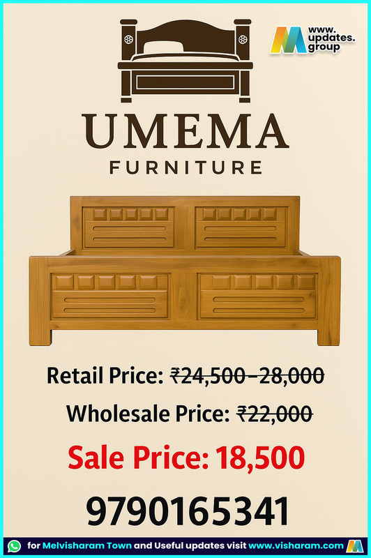 www. updates. group UMEMA FURNITURE Retail Price: 724,500-28,000 Wholesale Price: $22,000 Sale Price: 18,500 9790165341 for Melvisharam Town and Useful updates visit www.visharam.com