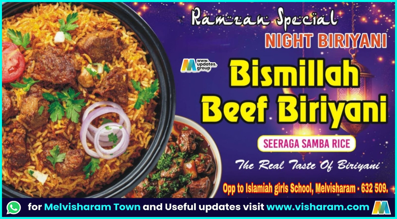 🌙 Ramzan Special Night Biriyani! 🍽️ 🔥 Bismillah Beef Biriyani 🍚 Seeraga Samba Rice Experience the Real Taste of Biriyani 😋 📍 Opp to Islamiah Girls School, Melvisharam – 632509